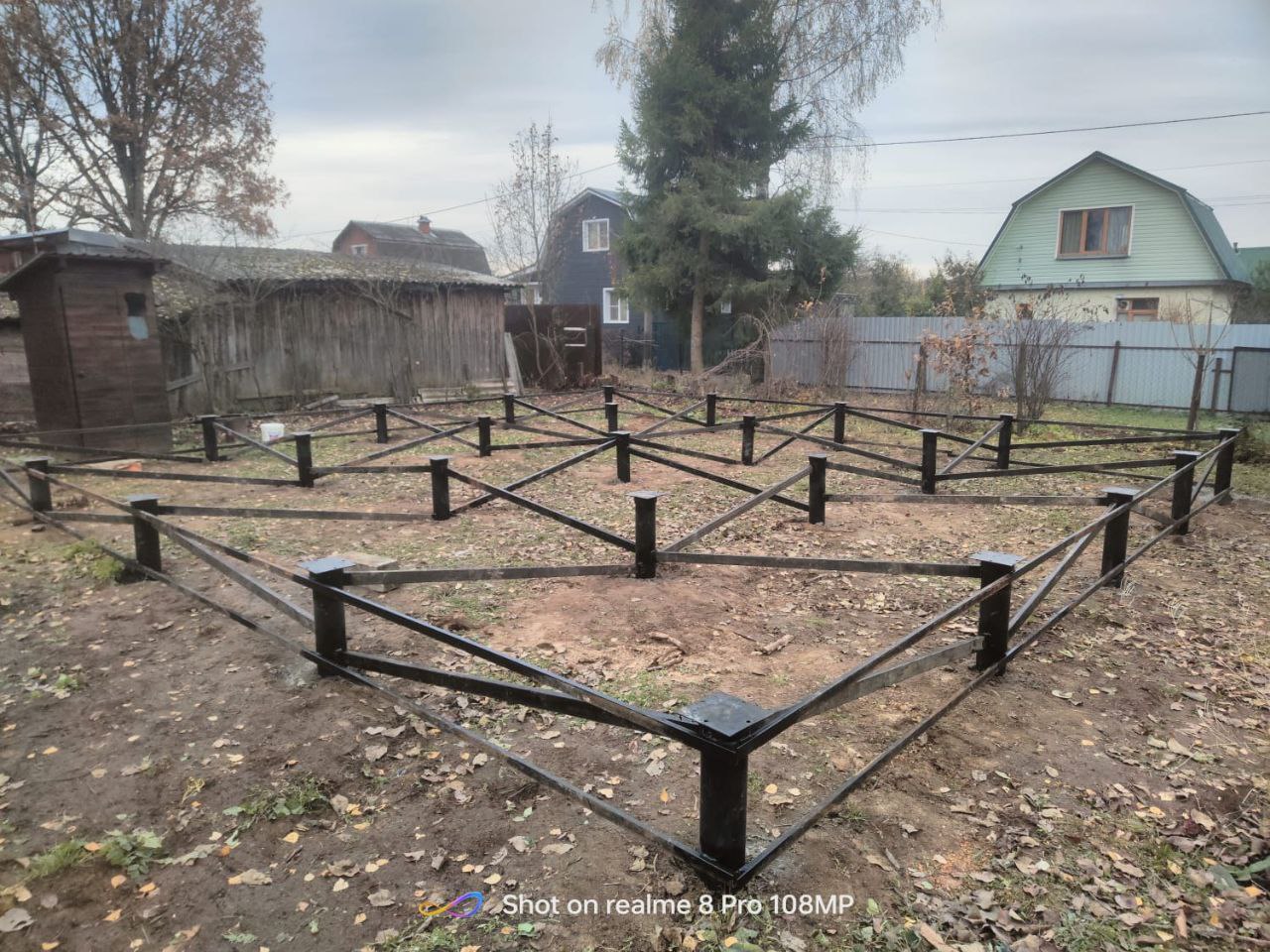 • По периметру выполнена обвязка профильной трубой, обеспечивающая равномерное распределение нагрузки и повышающая общую жесткость фундамента.